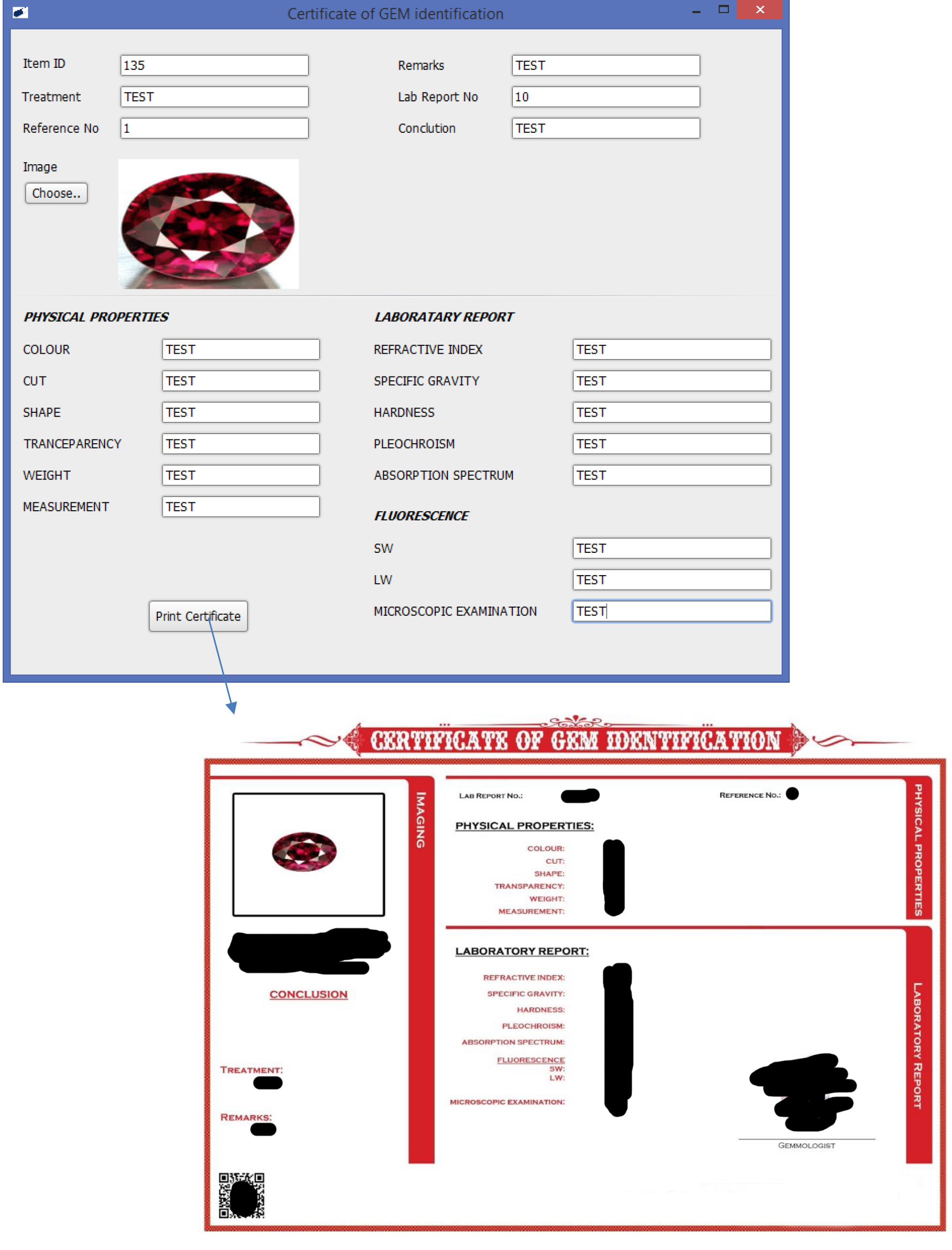 Lab Report No. is the number of the Certificate. It will be appointed