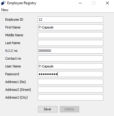 Then you can see the Employee Registry form.
