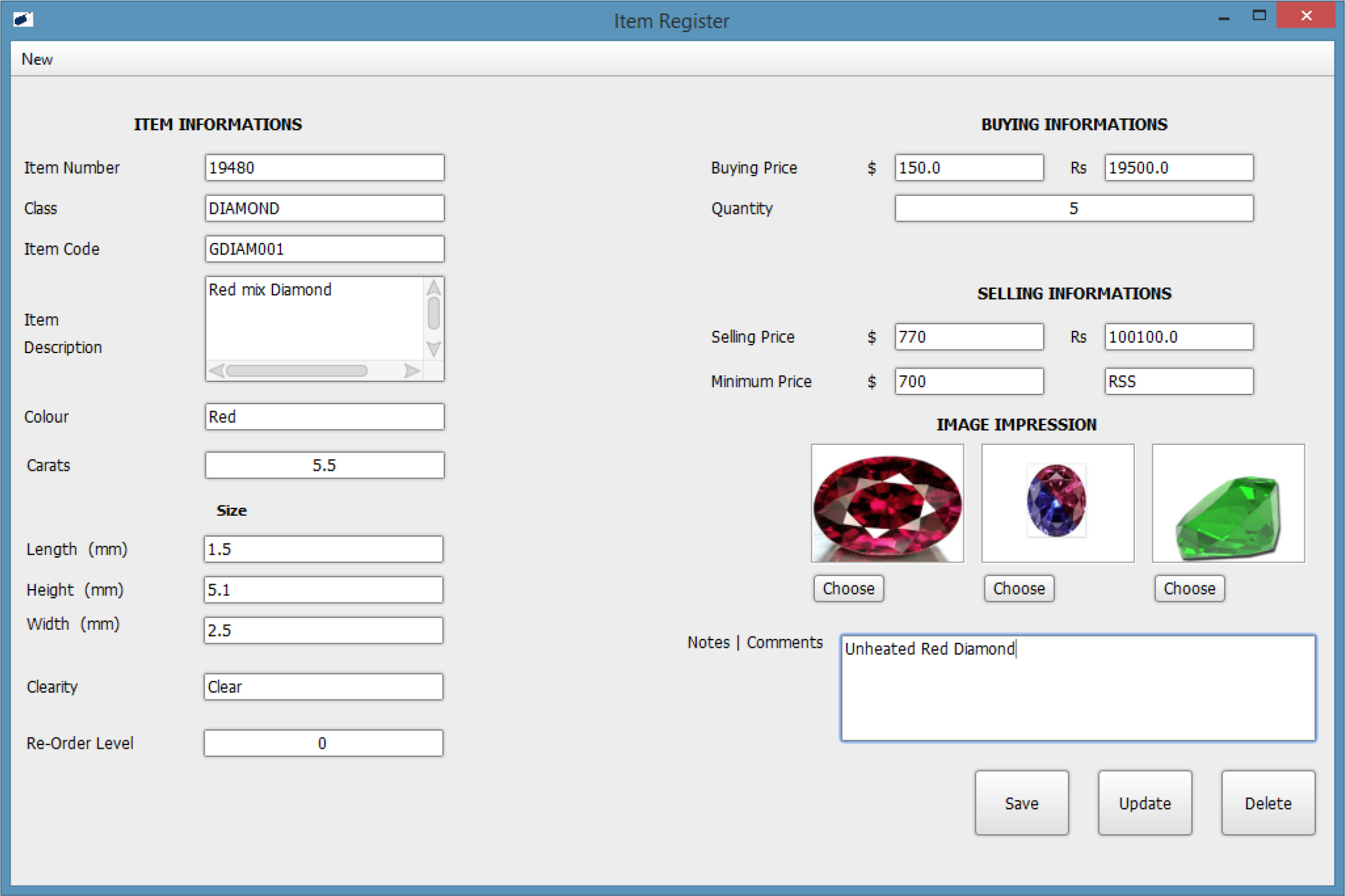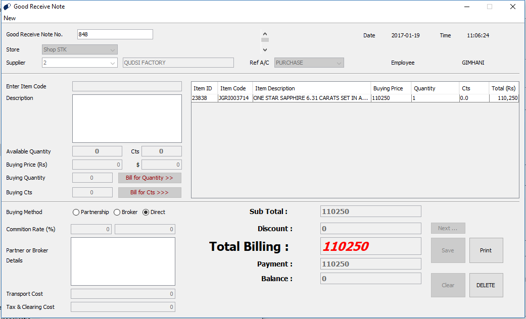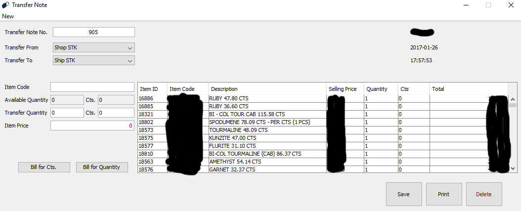 Can be transferred Carat wise or Quantity wise using the Transfer Note. Deleting’s can be done only by the Administrator but Savings in the Transfer Note can be done by the other Operators as well. By entering the Transfer Note No. you can get the details of the past Transfer Notes. Hard Copies of the Transfer Note can be obtained.