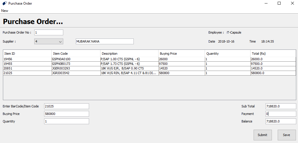 This is the record to show the ordered purchases from the Suppliers. Purchase Order does not affect the Inventory Control System.