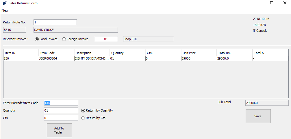 All the relevant details will appear on the relevant fields once you enter the Item